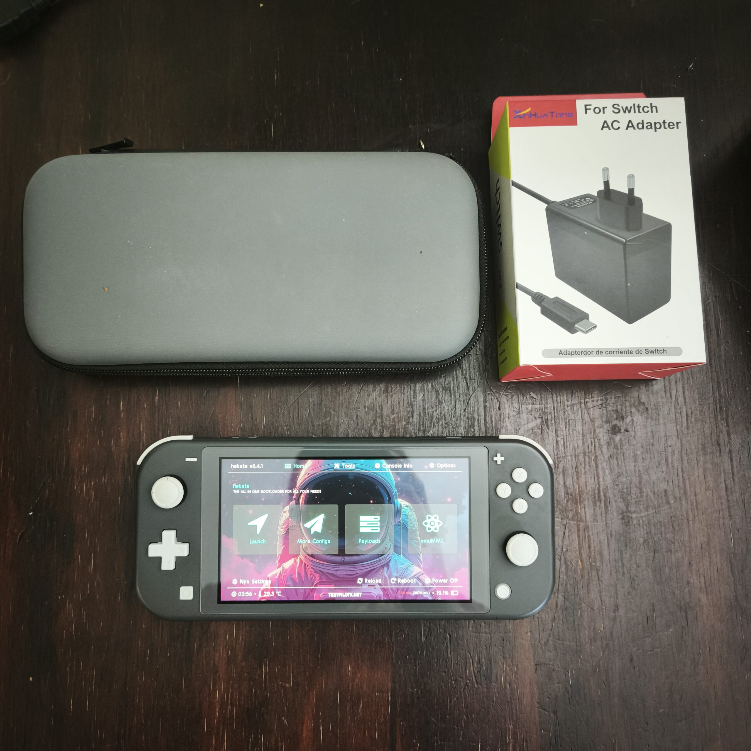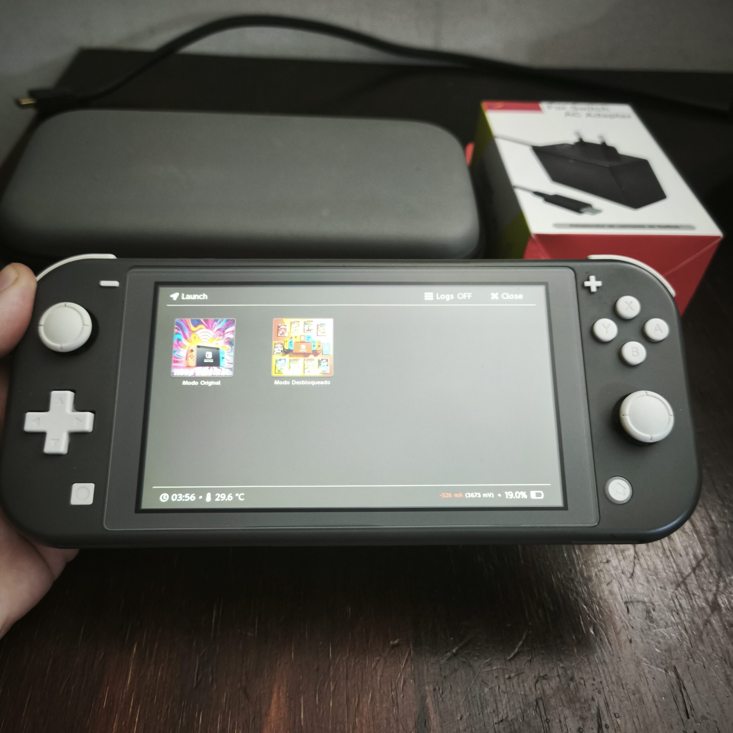 Esta consola permite alternar modo original (para jugar online y usar internet sin problemas) y modo d3sbl0queo (donde van los juegos instalados).